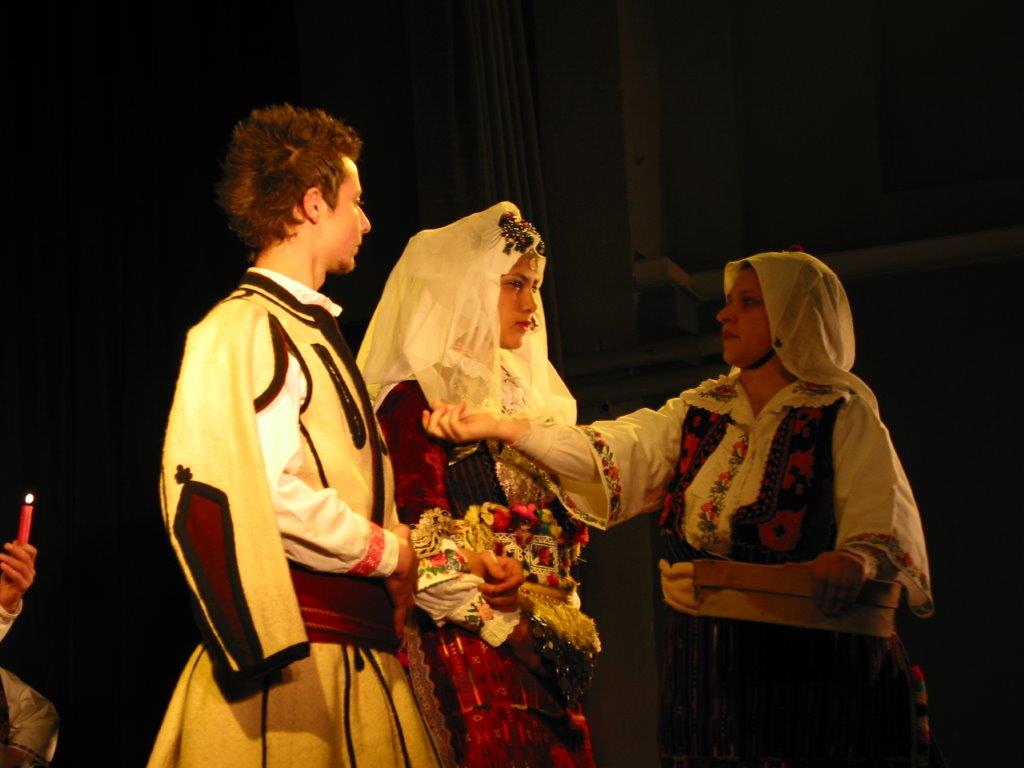Мешана игра во која преку драмски дејствија, игри и песни е претставена Свадбатакако еден од најважнитемоменти во животот на секој човек, содржејќи ги во себе сите значајни елементи, обичаи иобреди на премин кои се карактеристични за Вевчанската свадба.